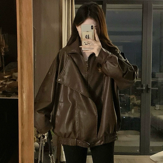オーバーサイズフェイクレザーブルゾン 4004