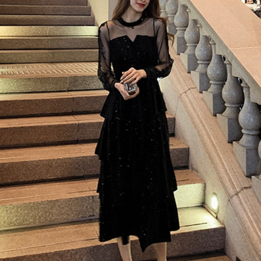 シアー切替ミモレ丈ワンピース (3842)