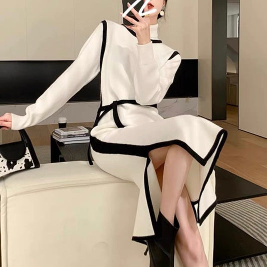 全4色 ニーカラーリブニットワンピース (3180)