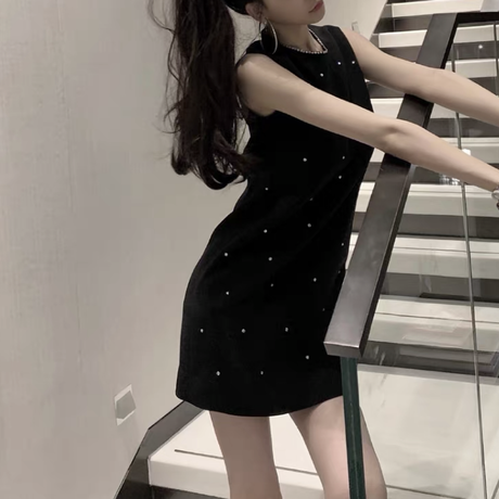 全2色 ラインストーンAラインワンピース (2235)