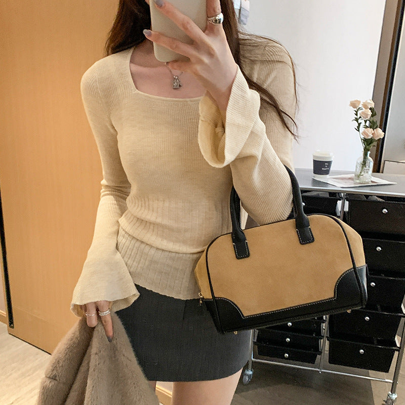 スクエアネックリブニットトップス 3996