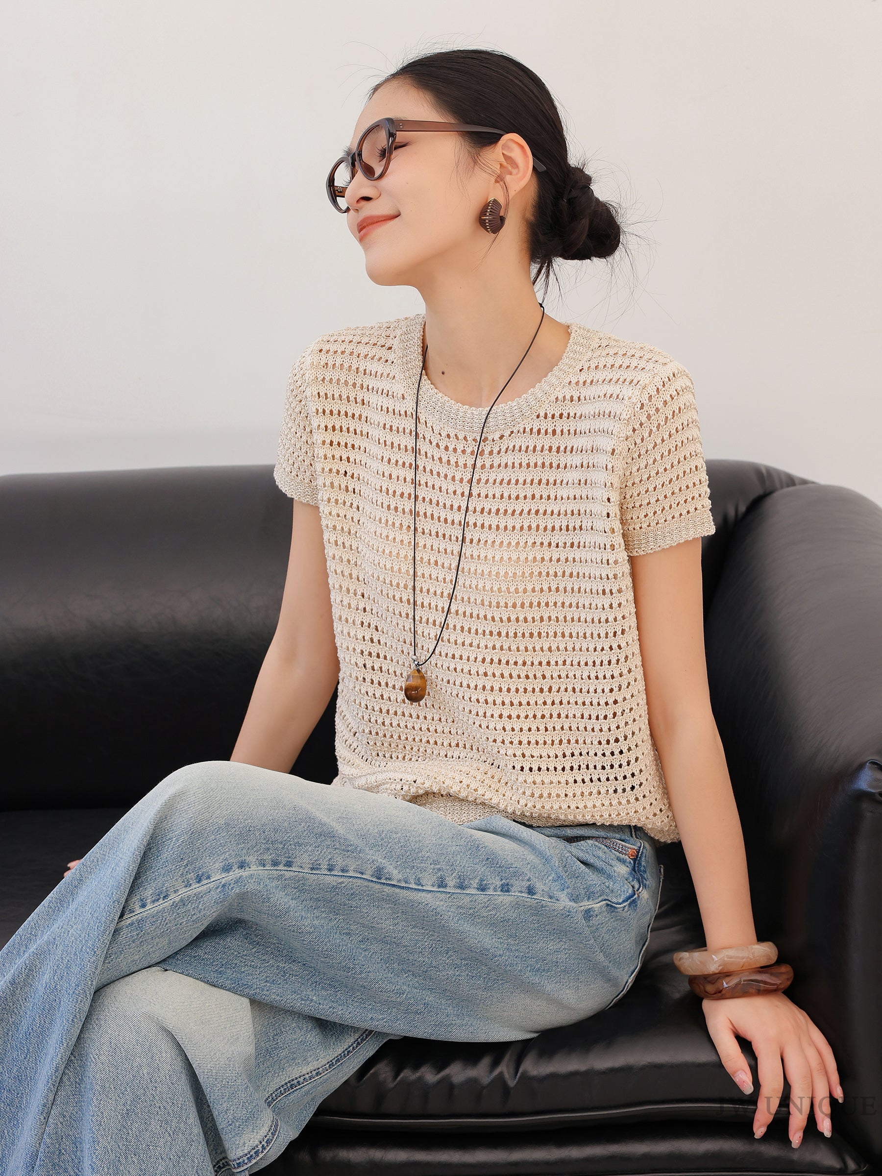 【商品名:チェーンメッシュシアーニットTシャツ】