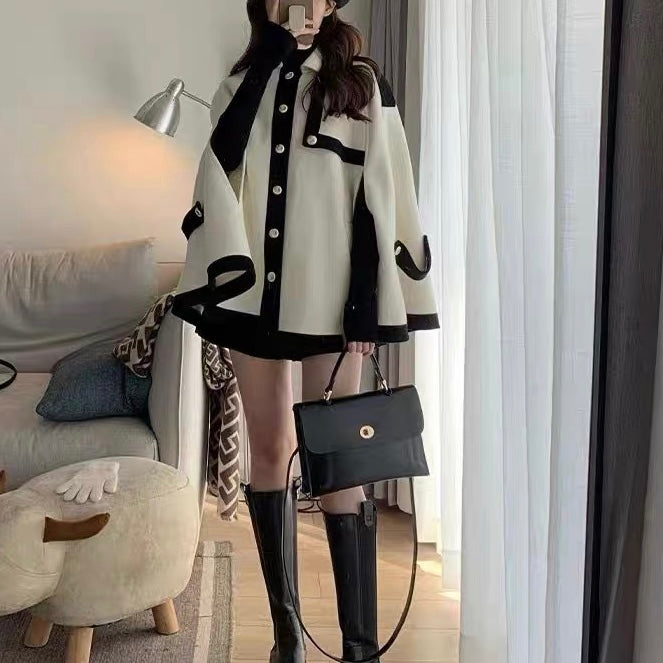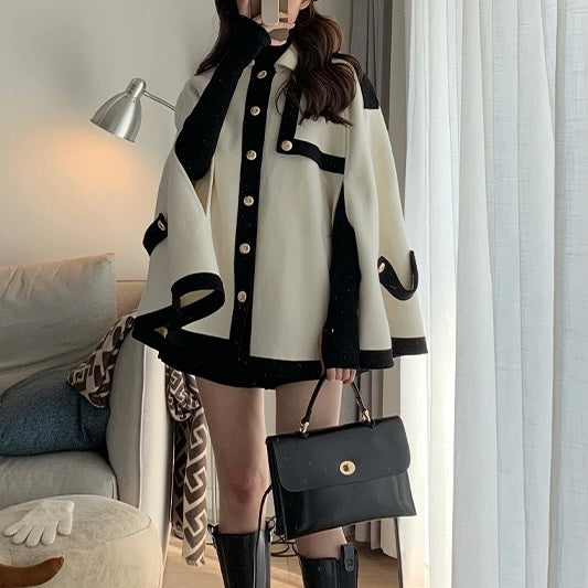 バイカラーケープコート (3745)
