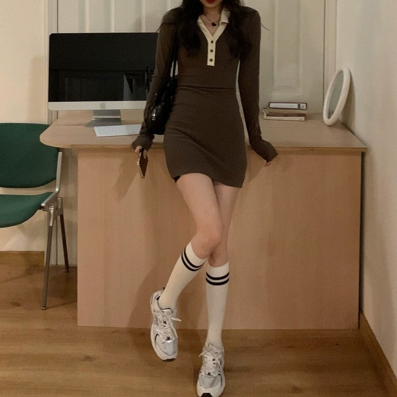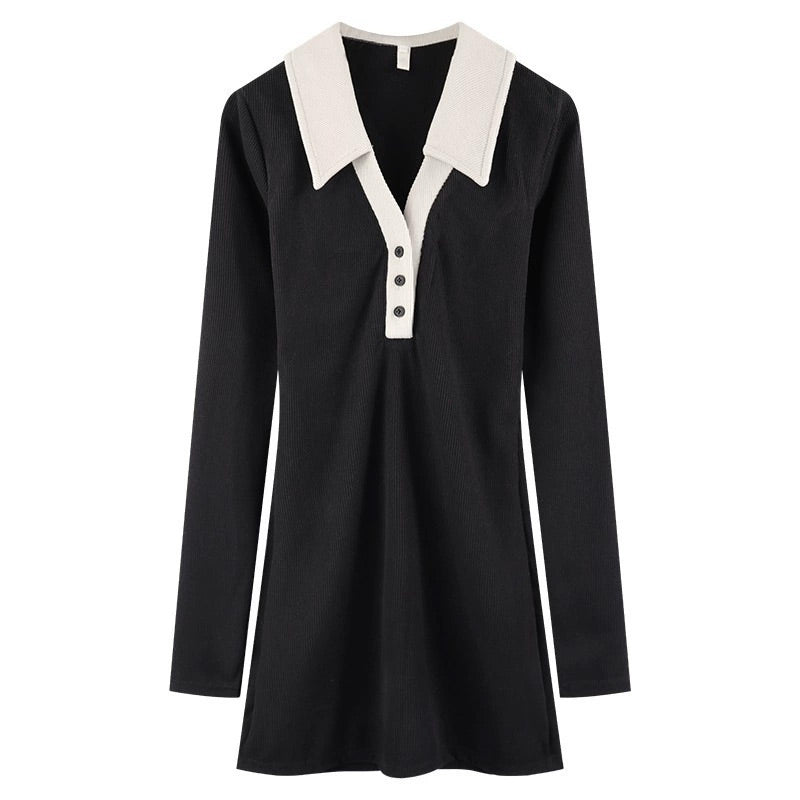 ラインを引き立てるタイトシルエットに、ポロ襟が程よい抜け感をプラス。