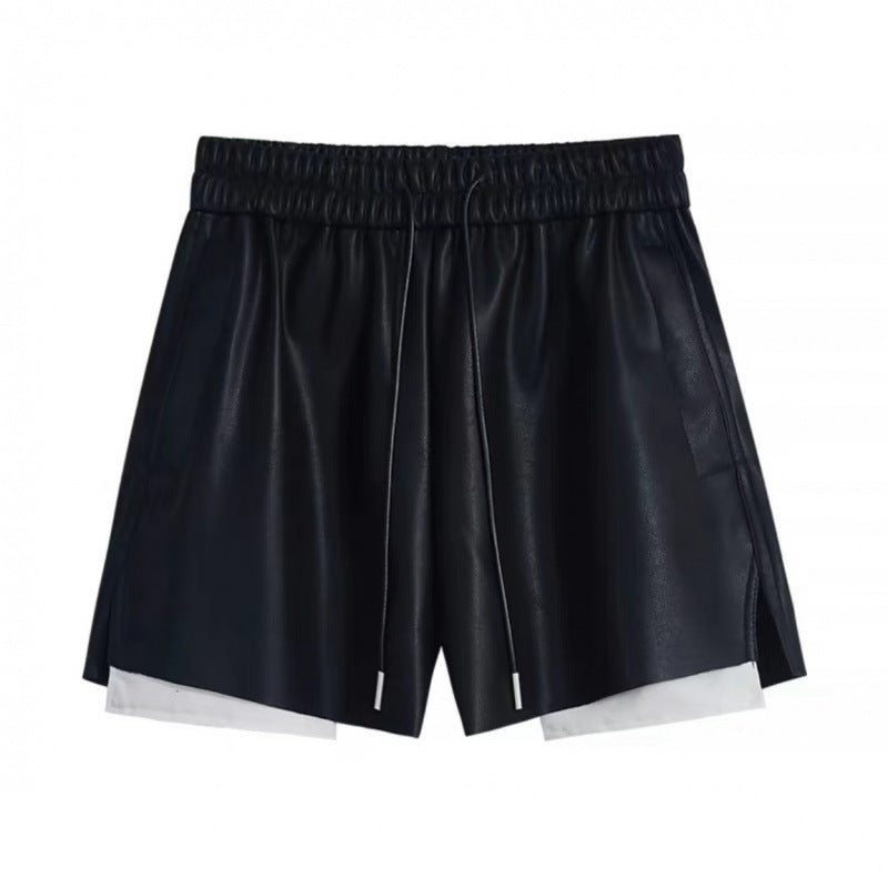 上品な光沢感のあるフェイクレザーを使用したショートパンツです。シンプルなデザインながらも、素材の質感がお洒落感を演出。大人カジュアルなスタイルにぴったりで、普段使いはもちろん、少しドレッシーなトップスと合わせればお出かけにも対応できます。着回し力の高さが魅力のアイテムです。
