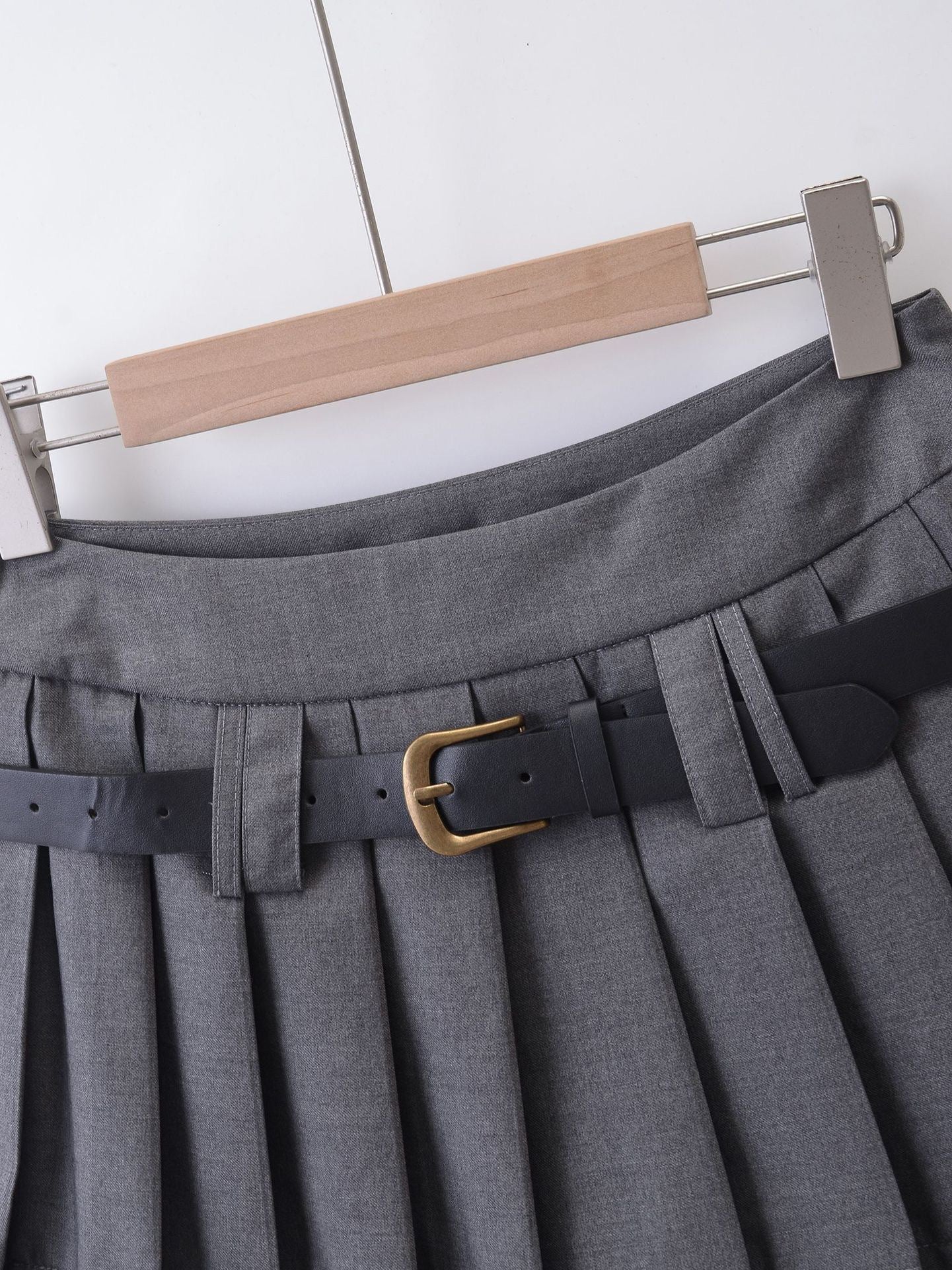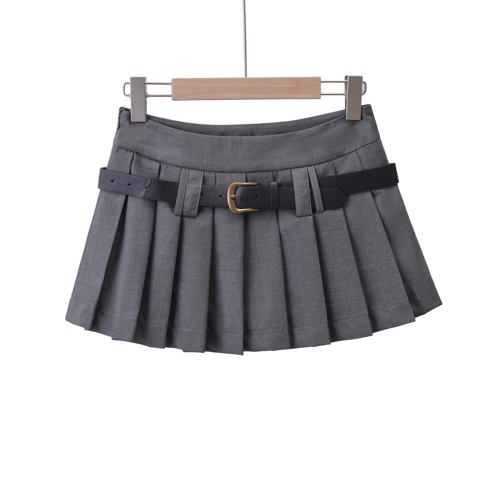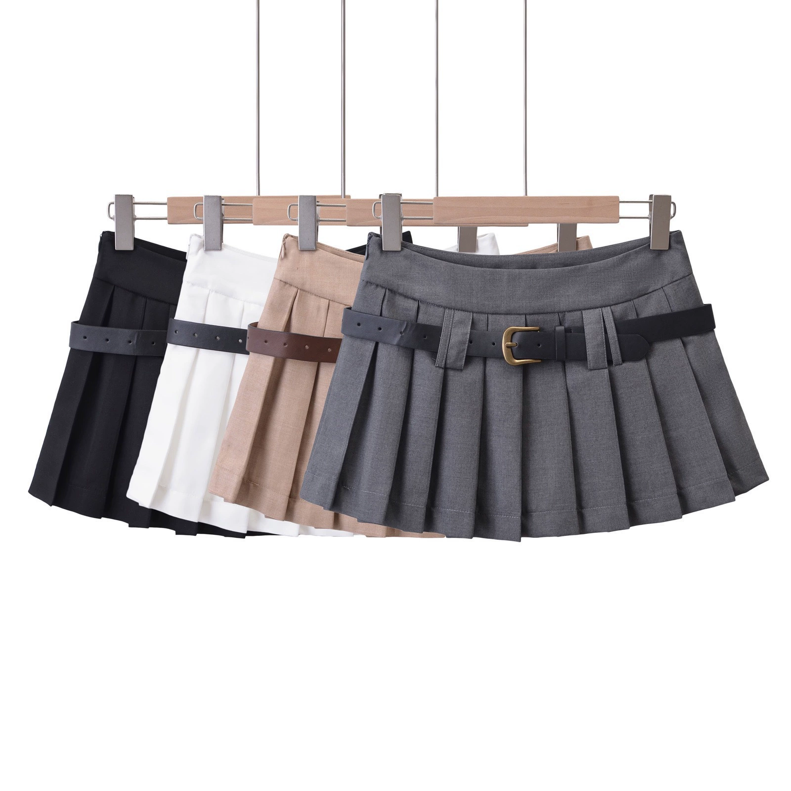 脚をすらりと見せてくれるトレンド感のあるベルト付きプリーツミニスカート。