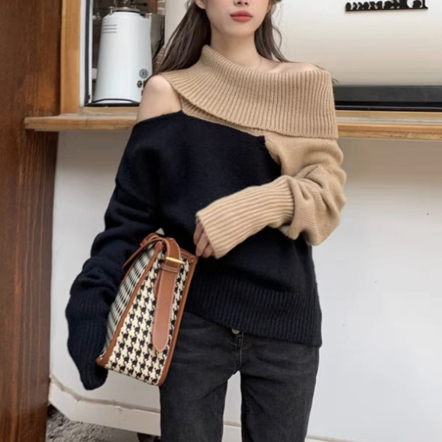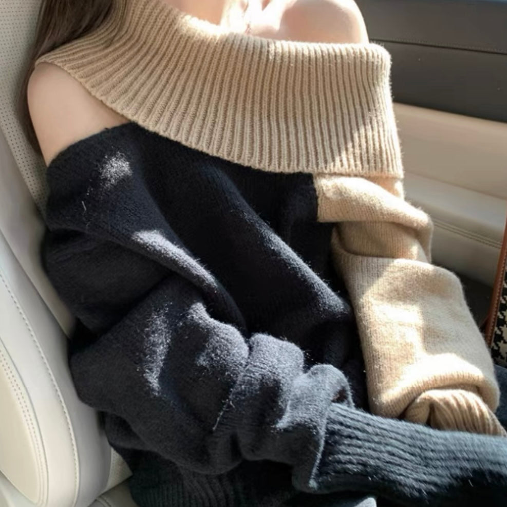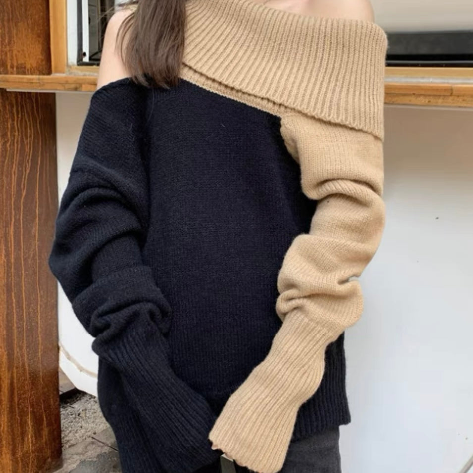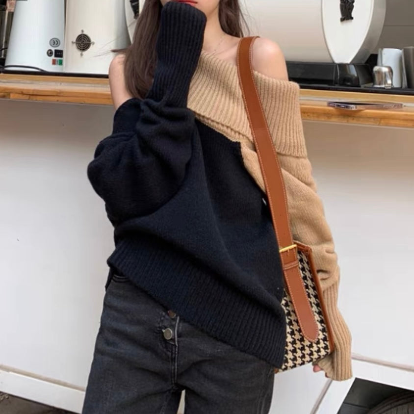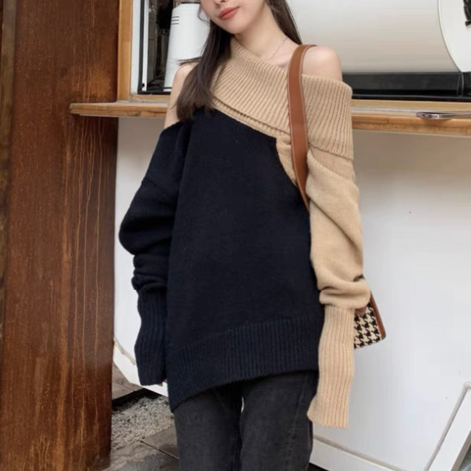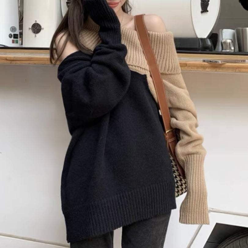 オフショルダーバイカラールーズニット (3776)