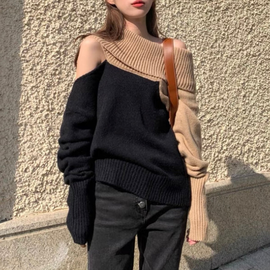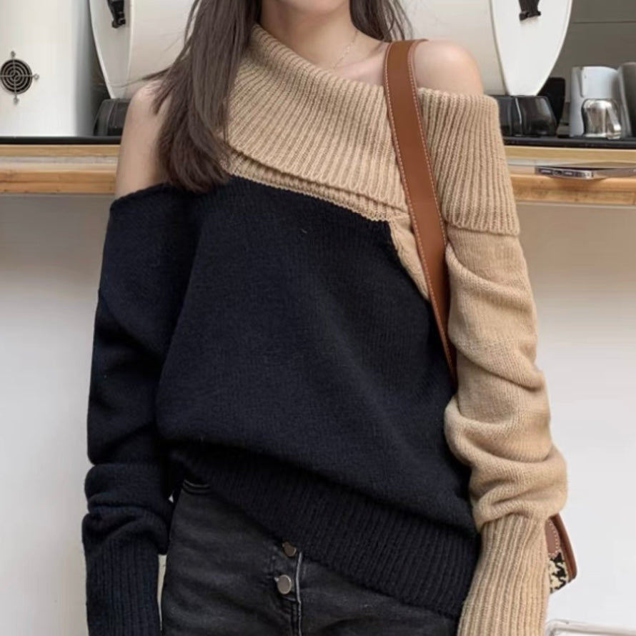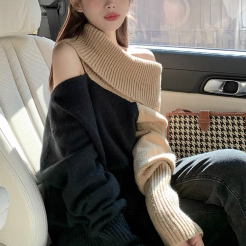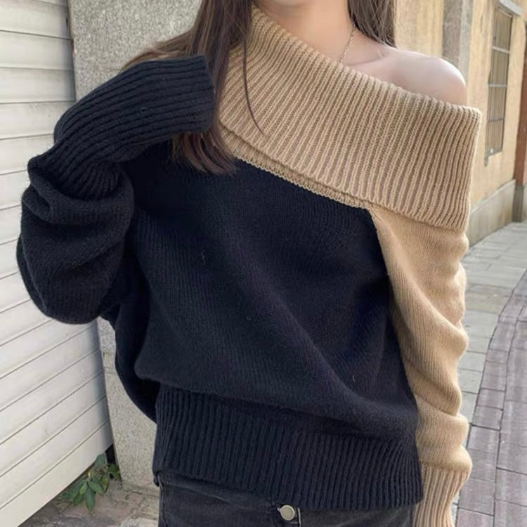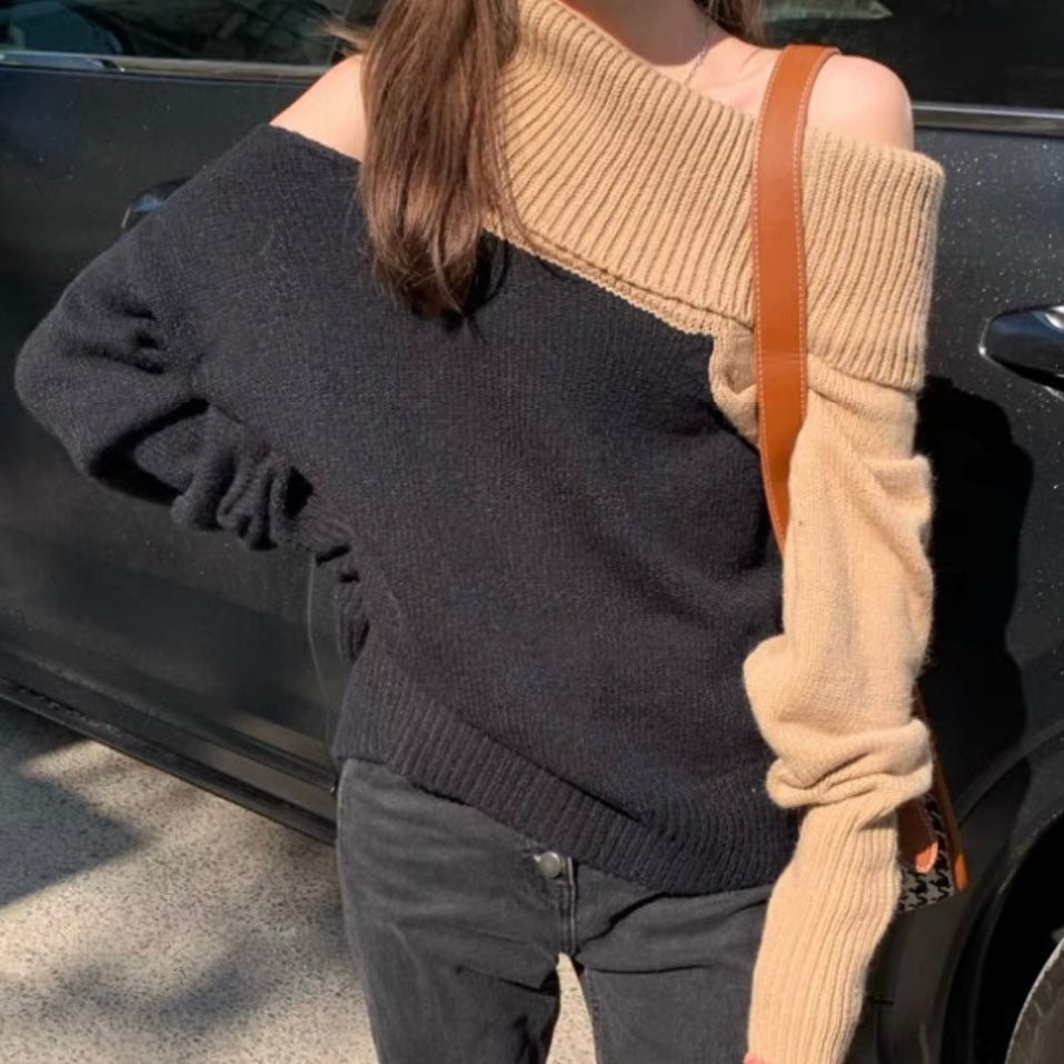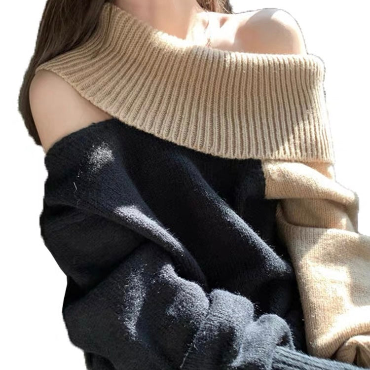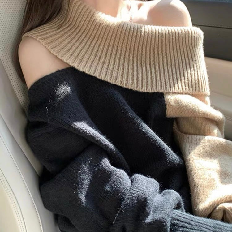 オフショルダーバイカラールーズニット (3776)