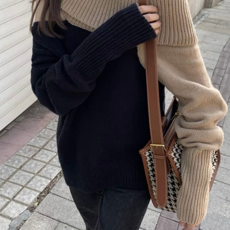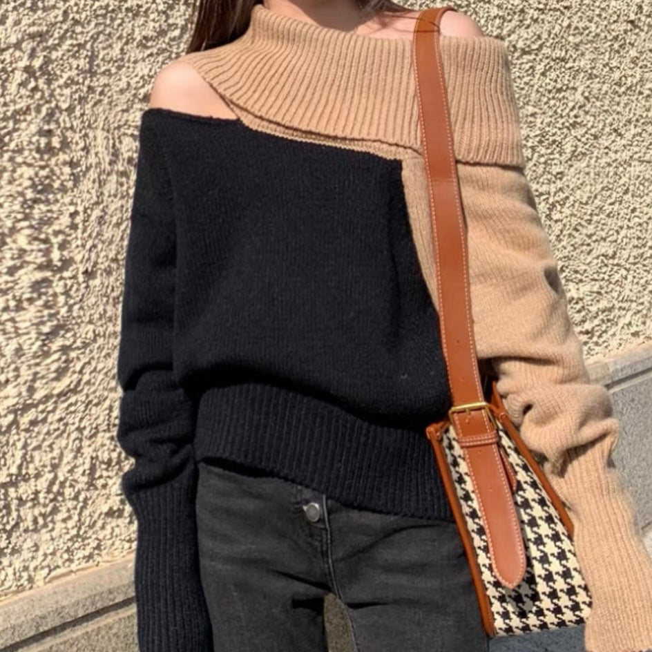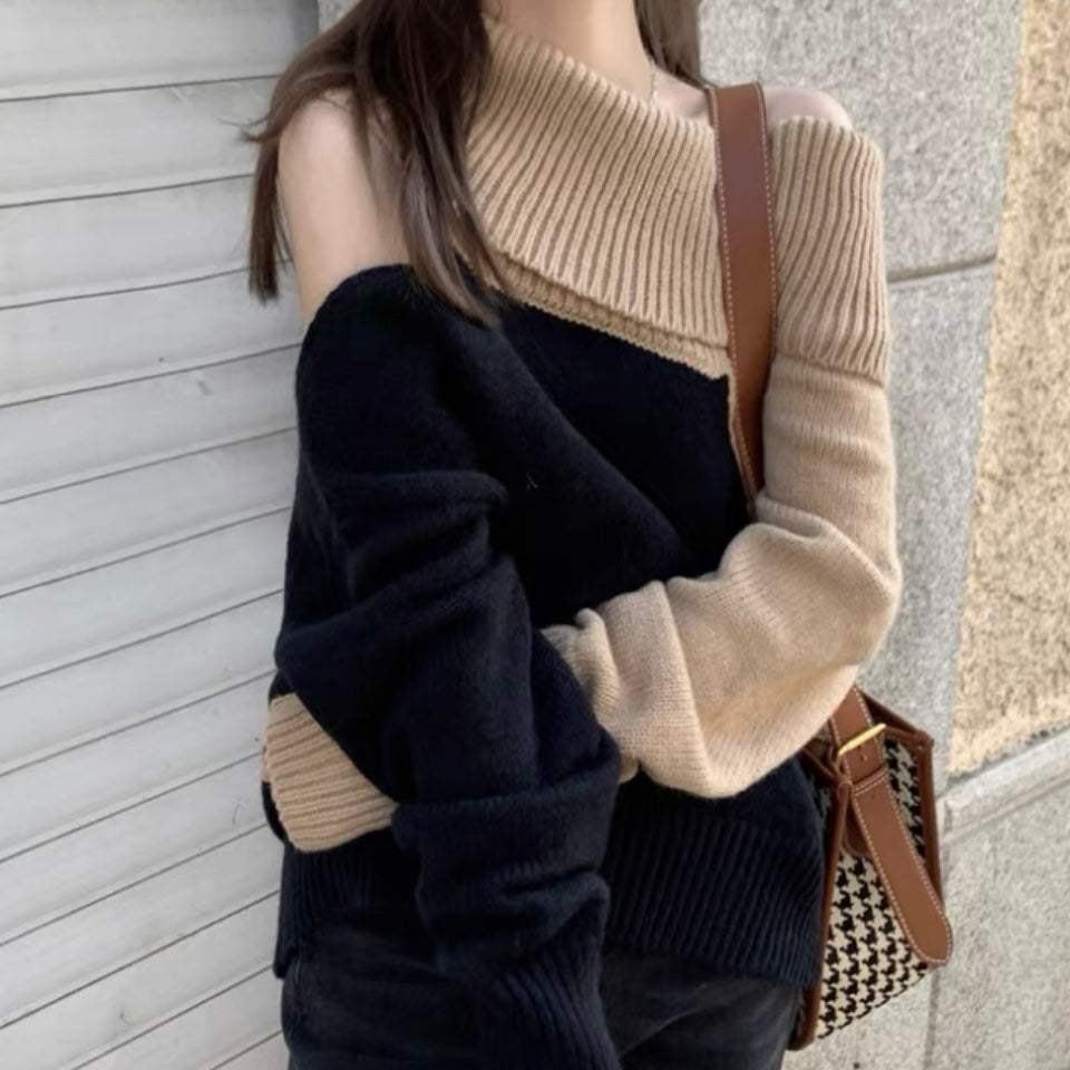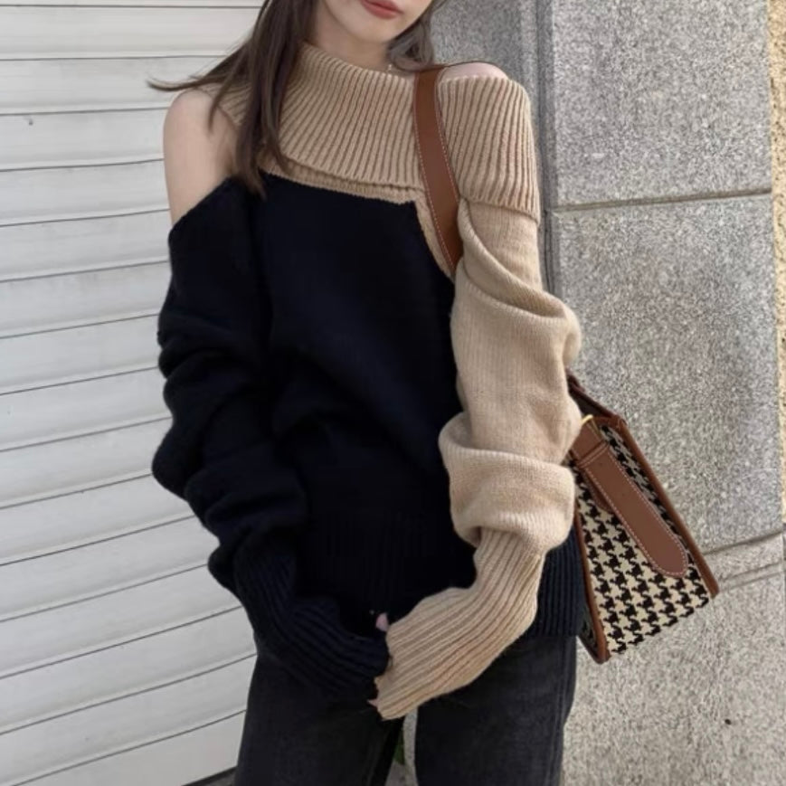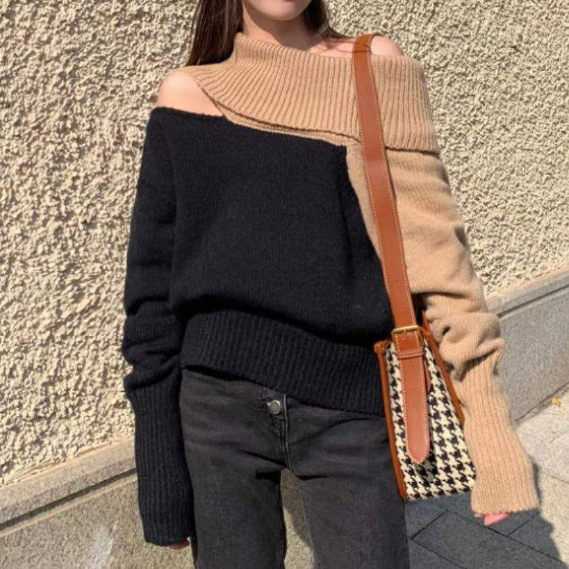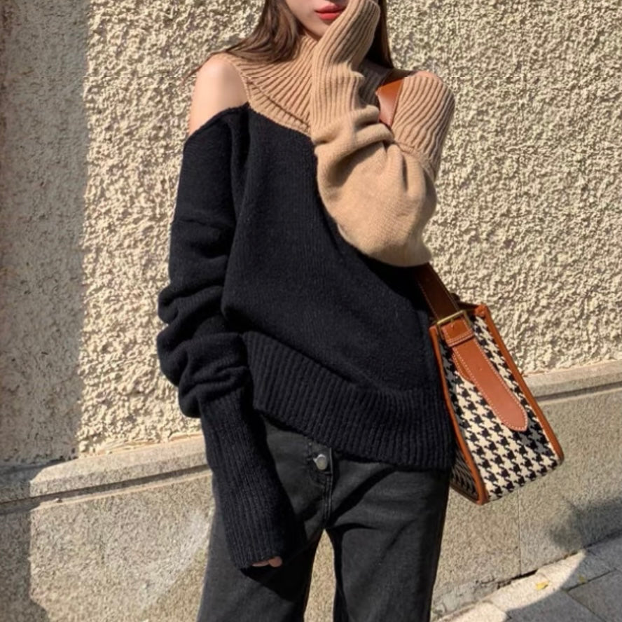 オフショルダーバイカラールーズニット (3776)