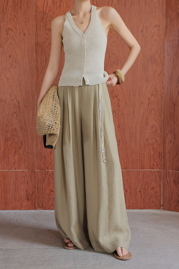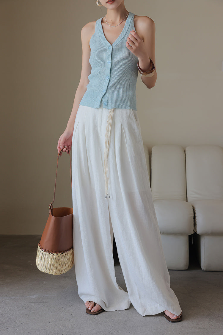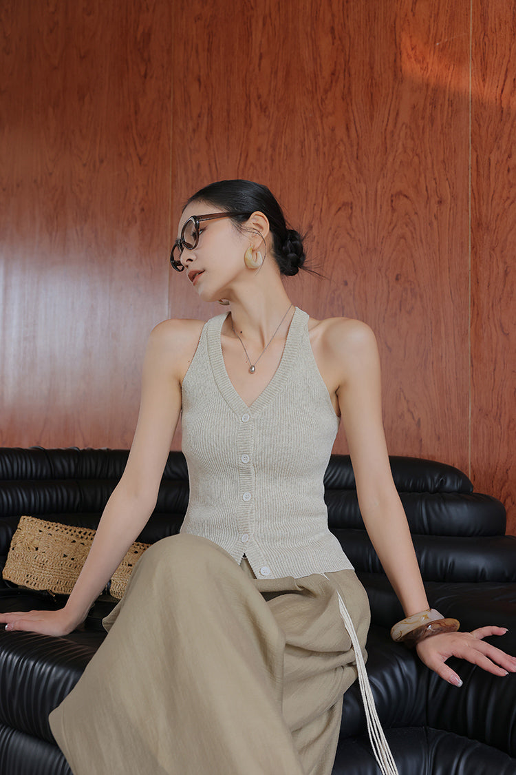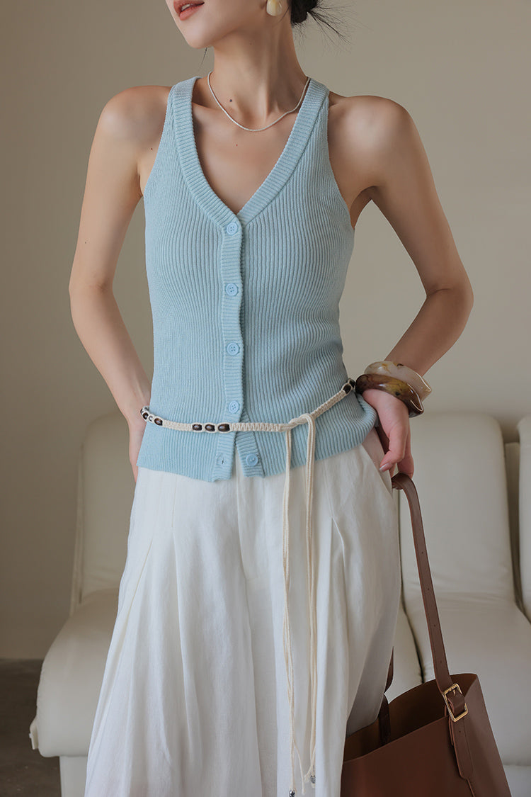 爽やかなVネックデザインが特徴のノースリーブニットベスト。ほどよい透け感のある編み地で、夏らしい軽やかな雰囲気を演出します。フィット感のあるシルエットながら柔らかなニット素材で着心地も抜群。そのまま一枚で着るのはもちろん、インナーやシャツとのレイヤードでロングシーズン活躍します。カジュアルからモード、韓国風コーデまで幅広く合わせやすい万能アイテムです。